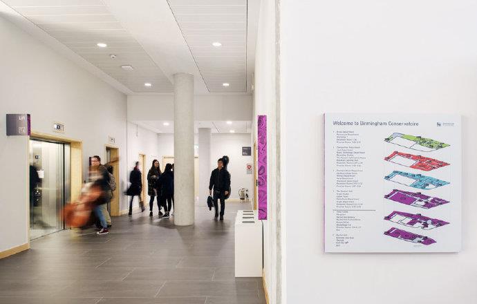 英國(guó)皇家伯明翰音樂(lè)學(xué)院(Royal Birmingham Conservatoire)標(biāo)識(shí)導(dǎo)視系統(tǒng)設(shè)計(jì),Thomas.Matthews作品。